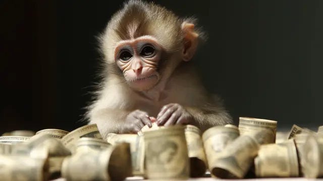 At Yale University, a team of scientists once conducted an experiment to test how a colony of tufted capuchin monkeys would respond to money. They gave the monkeys small metal tokens that could be exchanged for food rewards such as grapes or sweetened gelatin. The monkeys learned the system quickly. Within days, they were not only trading the tokens but also stealing, hoarding, and even gambling with them.